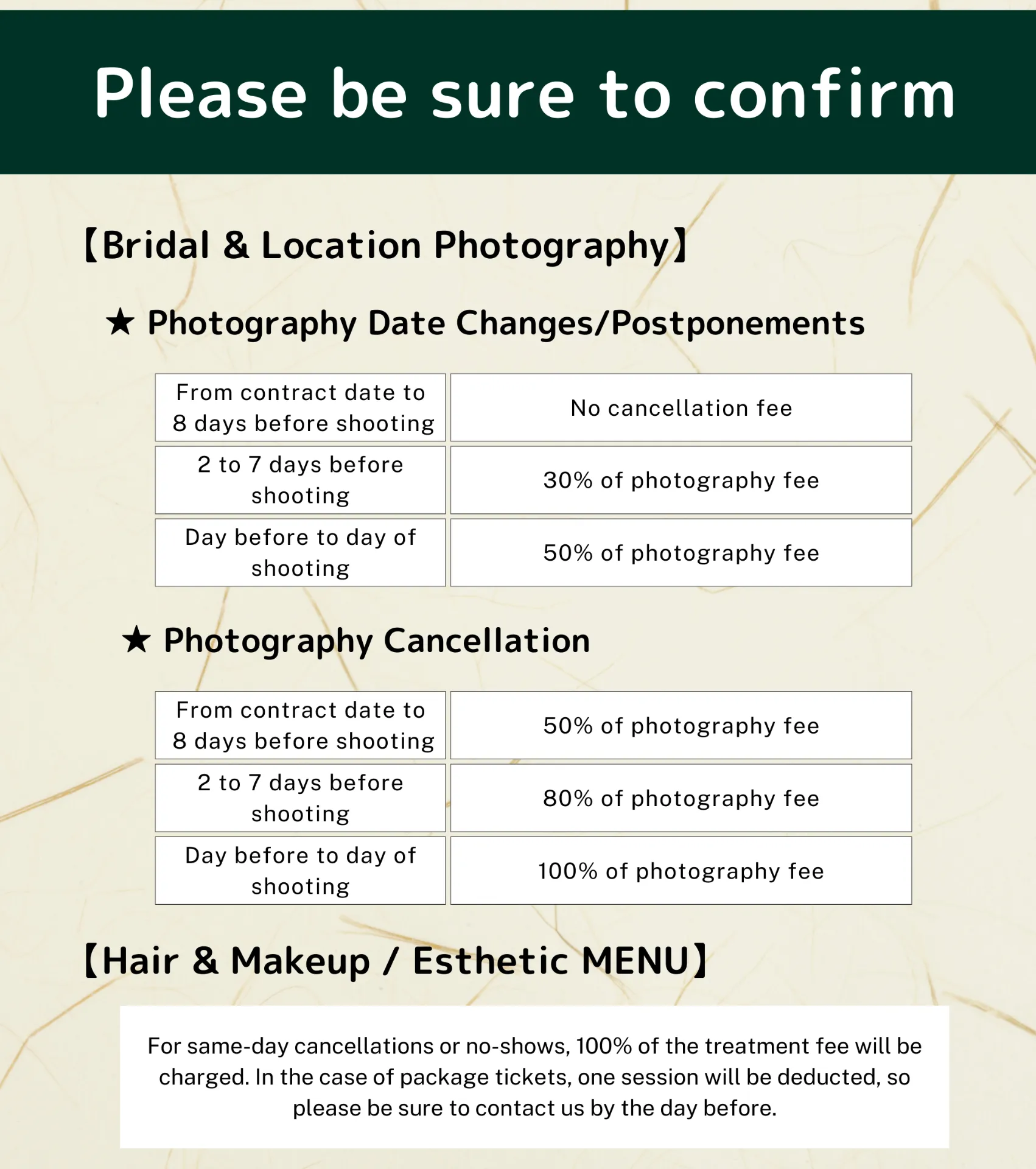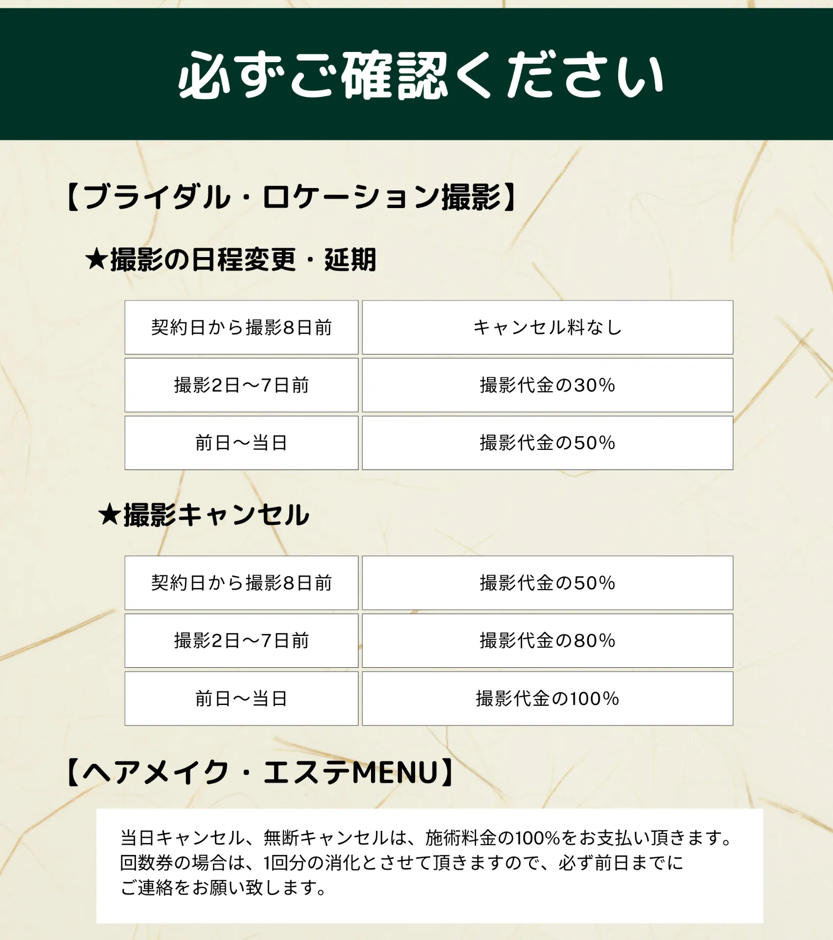 結婚式に向けてお客様を美しく輝かせるための各種サービスを詳細にご紹介しています。おすすめのヘアメイク、エステ、着付けなどの豊富なメニューを一覧で確認でき、それぞれのサービス内容、所要時間、料金などを具体的にご案内しています。お客様が自分に合ったサービスを見つけやすいように、各メニューは明確に分類され、特徴や効果が詳しく説明されています。